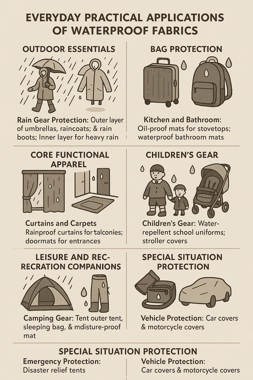 Araw -araw na mga praktikal na aplikasyon ng Mga tela na hindi tinatagusan ng tubig