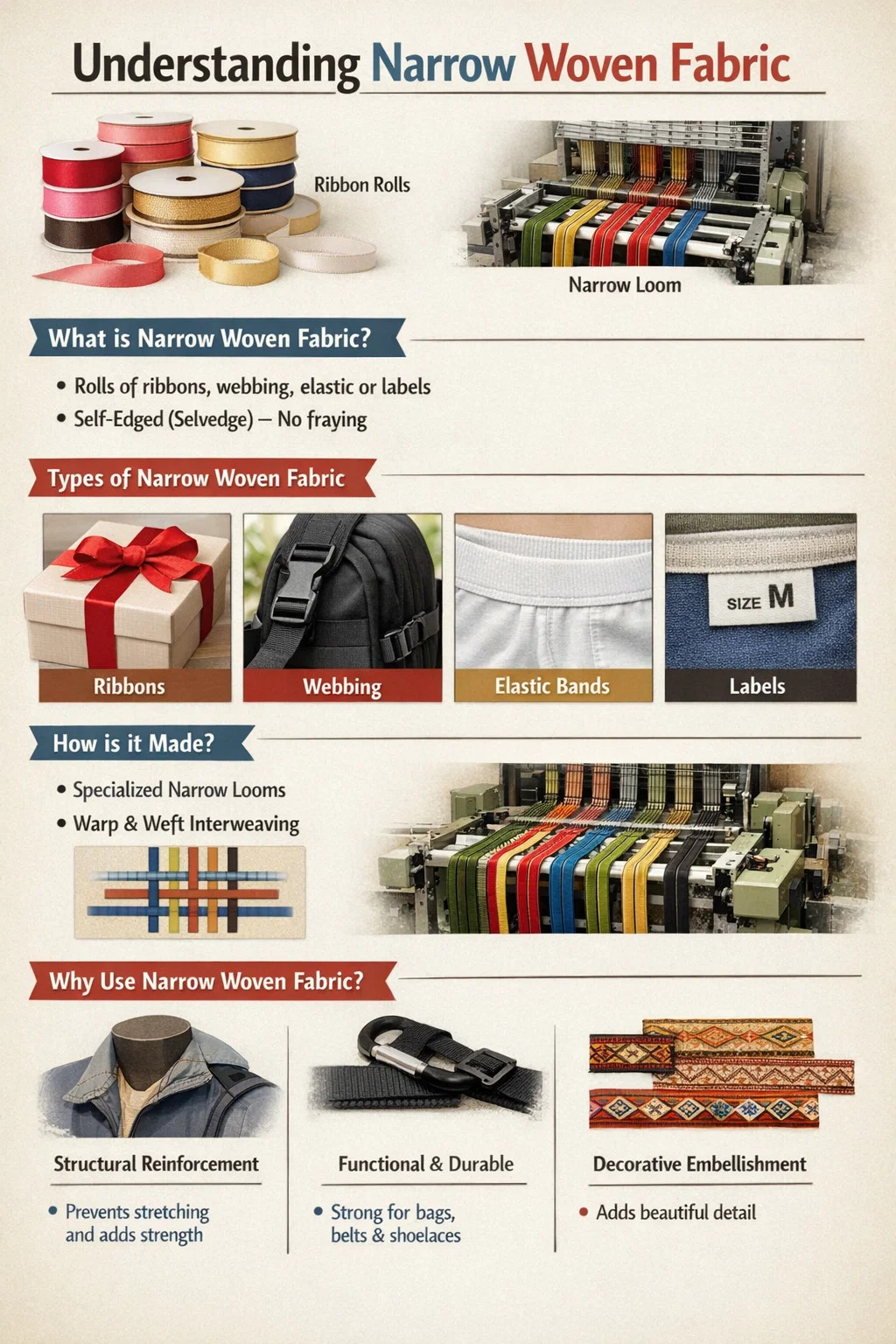 Narrow woven fabric refers to woven materials that are very narrow, appearing as strips or ribbons. While we often focus on larger pieces of fabric when buying clothes, this "narrow" woven fabric is actually found in every corner of our lives.
