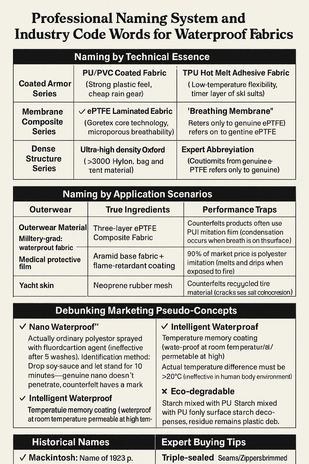 Propesyonal na sistema ng pagbibigay ng pangalan at mga salitang code ng industriya para sa Mga tela na hindi tinatagusan ng tubig